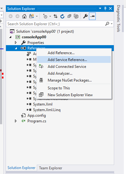 a) Once the application is build and to reference the WCF service within the "SolutionExplorer" right click over "Service Reference" as shown in Fig1.